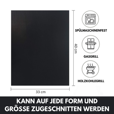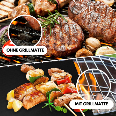 Die Grillmatte zum Grillen ist für alle Grills und für den Backofen geeignet. Egal ob Steaks, Würstchen, Gemüse oder Fisch, alles lässt sich problemlos auf der Grillmatte grillen und behält gleichzeitig das typische Muster des Grillrosts. Auch Spiegeleier oder Bratkartoffeln können jederzeit auf dem Grill zubereitet werden, ohne ins Feuer zu fallen.
