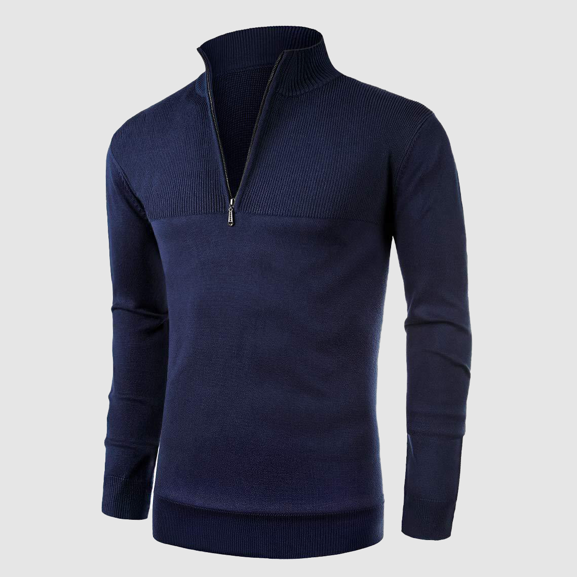 Herren Freizeit V-Ausschnitt Reißverschluss Langarm Strickpullover für Wärme